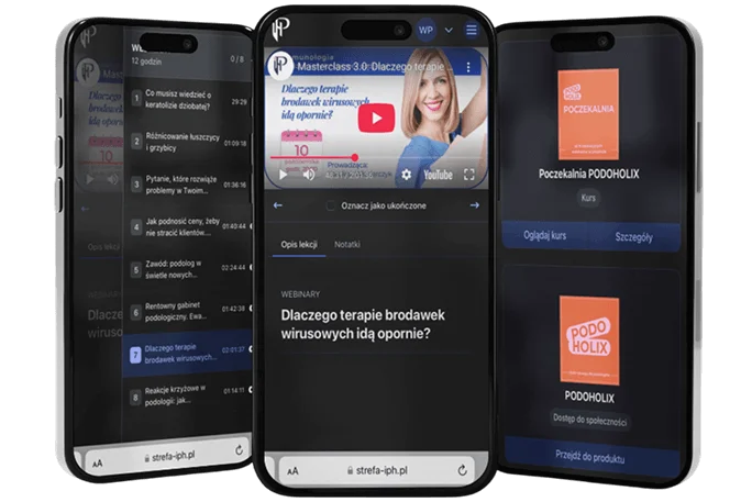 Podoholix platofrma edukacyjna dla podologów. Działa jak popularne platformy z serialami – z tą jednak różnicą, że zamiast seriali otrzymujesz dostęp do bazy wiedzy z materiałami edukacyjnymi i wspierającej społeczności.